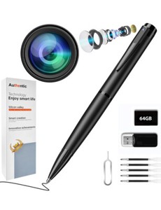 64G Spy Camera Pen, 1080P FHD Hidden Camera, Rechargeable Nanny black camera