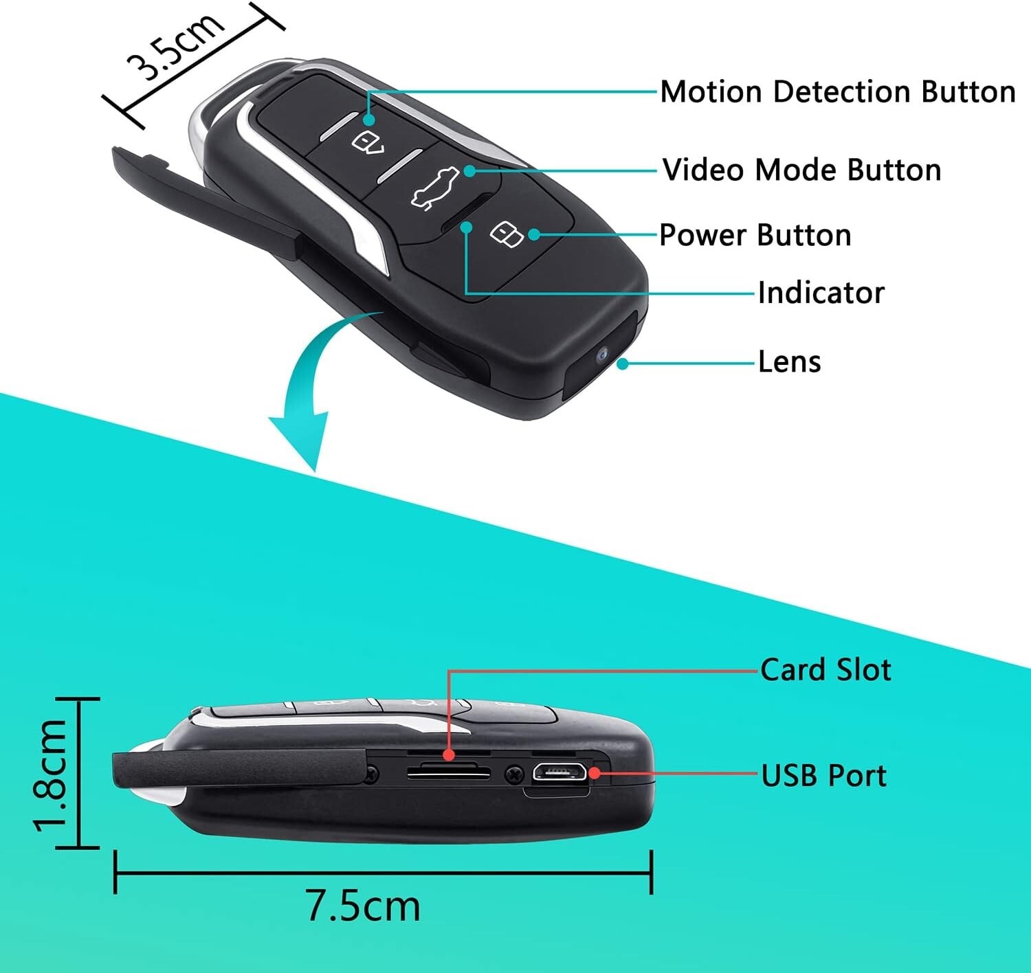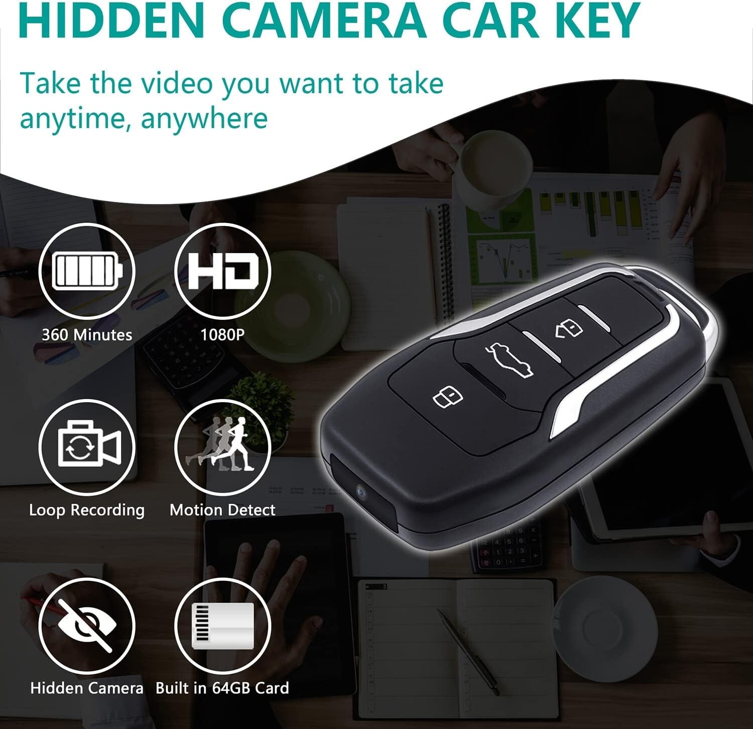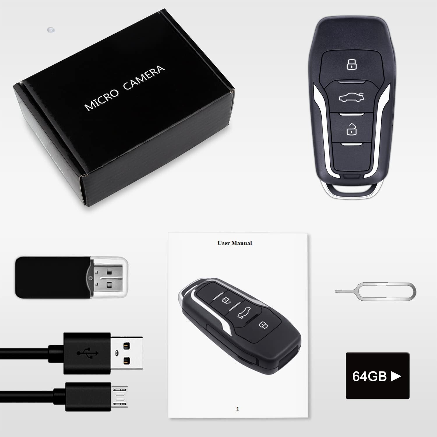 64GB Car Key Spy Camera, long Battery Life Mini Hidden Micro Security camera1080