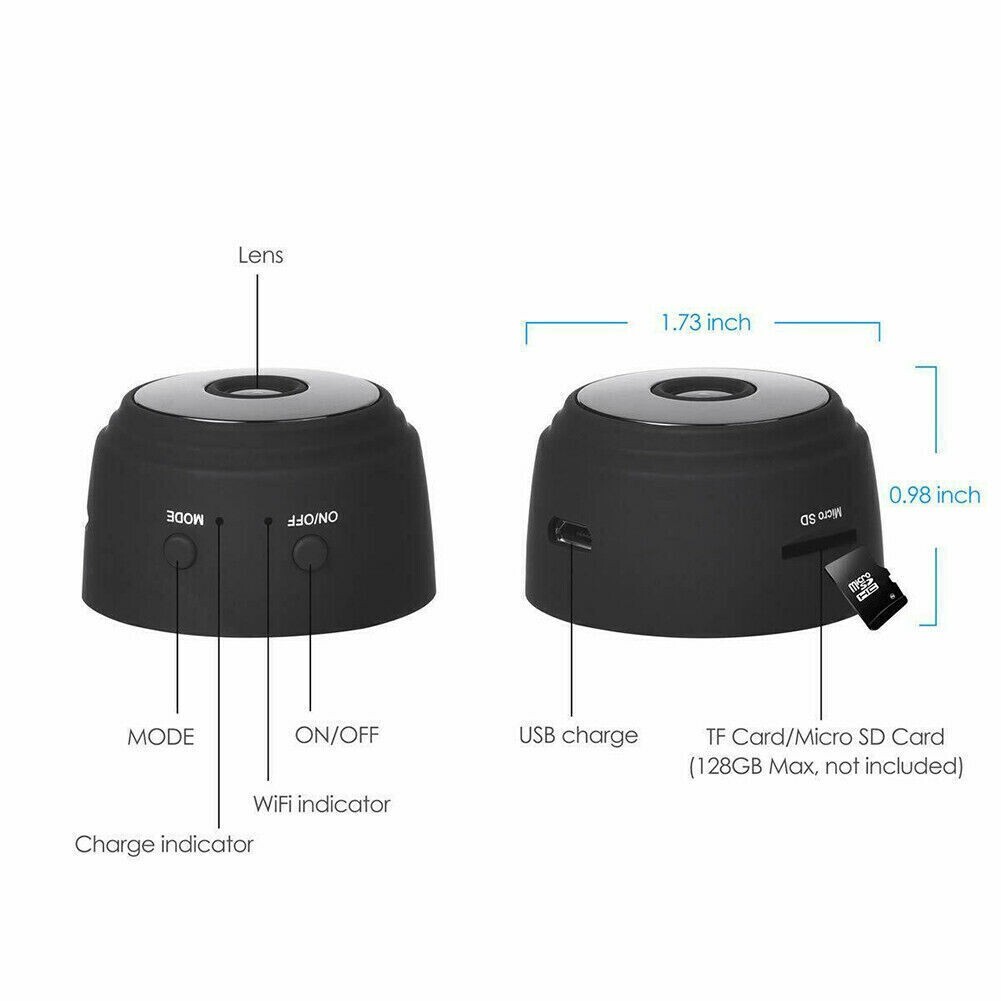 Mini Hidden Spy Camera Wireless Wifi IP Home Security HD 1080P DVR Night Vision Package Included:1 * WiFi Wireless Camera 1 * Magnetic Bracket 1 * Metal Tab 1 * USB Cable 1 * Instruction Manual Features: – 1080P Full HD Brings You A Different Experience. This wireless IP camera lets you view real-time what’s happening inside your home or office even at the same time as you’re away on a vacation or a quick business trip. The remote view can be accessed via the – – – APP(HD WIFI CAM PRO) using iOS and Android smartphones. – This wireless IP camera can work on WiFi (2.4GHz WiFi only) or No WiFi. When it works on No WiFi, insert a Micro SD card (SD card not include) and turn on, the camera will recording and saves the video files to the SD card (SD card not include). – You’ll be able to not only see things at midnight but also capture anybody who is moving in the camera. – This small camera bathroom has a built-in magnet, can work well with any iron material, easily place anywhere. This small camera with a rigid charging cable and magic base, when charging at the same time as recording, You’ll be able to manually rotate the recording angle 360 degrees. 1. Guard your home security anytime anywhere 2. Wide viewing angle, never miss any detail 3. With a 90-degree viewing angle, the camera provides a wide viewing range in your room. It enables you to know every movement happened in your house anytime anywhere. 4. All-purpose magnetic, easy to fix 5. A built-in magnet with a magnetic base can stick anywhere you wish to have. 6. Enhance night vision, see clearly at midnight Specifications: – Material: ABS – Size: 5*4.5*4.5cm – Color: black – Resolution Ratio: 1980*1080P – Video Format: AVI – Memory Card Type: support Micro SD card up to 128GB, (TF is not included) – Compressed Format: H.264 – APP Support: Android/iOS – APP:HD WIFICAM PRO – 90°Wide-angle – Battery working time: 60 minutes Note: -Due to manual measurement, there will be an error of +/- 2 mm.-Due to the shooting angle and the display, the goods may have a color difference from the picture. Guarantee • Fast & Free Shipping on ALL Orders We believe that you should enjoy the benefit of FREE Shipping on all of your orders within the all Continental States. That’s why no matter what you buy, We will be able to ship it for FREE, so the price you see is exactly what you pay. No hidden fees or shipping charges. • Most Items Delivered in 2-6 Business Days When you’re buying from us, you deserve fast and reliable service. That’s why we have a “Same Business Day” processing in place and wide range of shipping options to make a choice from in order to deliver your package as soon as imaginable. *2-6 business days time-frame is NOT GUARANTEED and was statistically calculated based on all previous orders. • ALL Orders Placed On Business Days Before 4 PM EST Will Be Shipped Same Day Why wait a day or more for your order to ship? All orders placed before 4 pm EST, Monday-Friday, ship the SAME day. Orders placed on Friday after 4 pm EST, Saturday and Sunday will be shipped the next Monday (if business day). We are closed on all Federal Holidays. • 30 Days Money Back Guaranteed! We will be able to gladly accept your return within 30 days of the original purchase. Please, see below for our full Returns Policy. Shipping Details • Most orders arrive at your door in 2-6 Business Days FOR FREE! • Place your order before 4 pm EST and it will be shipped the same day, Monday – Friday, excluding major holidays. • We will be able to ship your order to your PayPal Verified address provided. • Please verify your address and make sure that it is your current address before making your payment. Any address change requests after your payment CANNOT be guaranteed. • We do not include invoice with our shipments. Feedback • Positive feedback is automatically done once your order is shipped. • We appreciate all our customers to post a Positive Feedback and “Five-Star” scores. • If for any reason you are not satisfied with your purchase. Please contact us via eBay Message and We will be able to do our best to satisfy you! Payment & Order Cancellation • Instant PayPal payment is required. • We also accepts Visa, MasterCard, Discover, and American Express through PayPal guest checkout. • Sales tax is charged for California State orders. • To uphold a shipping speed, your order will be processed almost immediately. If you change your mind after your payment is confirmed, We will be able to do our best to stop the order, then again, we CANNOT guarantee the cancellation. Returns • We will be able to gladly accept your return within 30-Days of the original purchase. • Our return process is simple and fast: 1. We will be able to pay for the return shipping label if you received a broken/defective item(s) or the item(s) doesn’t match our description. As soon as we receive the item(s) back We will be able to process a refund for the item(s)which was/were returned. 2. You’re going to be required to pay for the return shipping label if you changed your mind or no longer need the item(s). As soon as we receive the item(s) back We will be able to process a refund for the item(s) which was/were returned. • If we’ll receive a package back on account of the incorrect address, the refund will be processed excluding our shipping cost. Contact Us • Send us a message on eBay and We will be able to answer within 24h on business days.