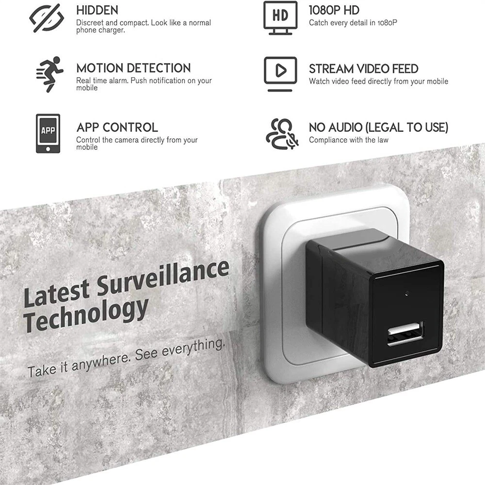 WiFi Mini Cam Wall Plug Charger Camera 1080P HD USB Nanny Cam Home Security DVR