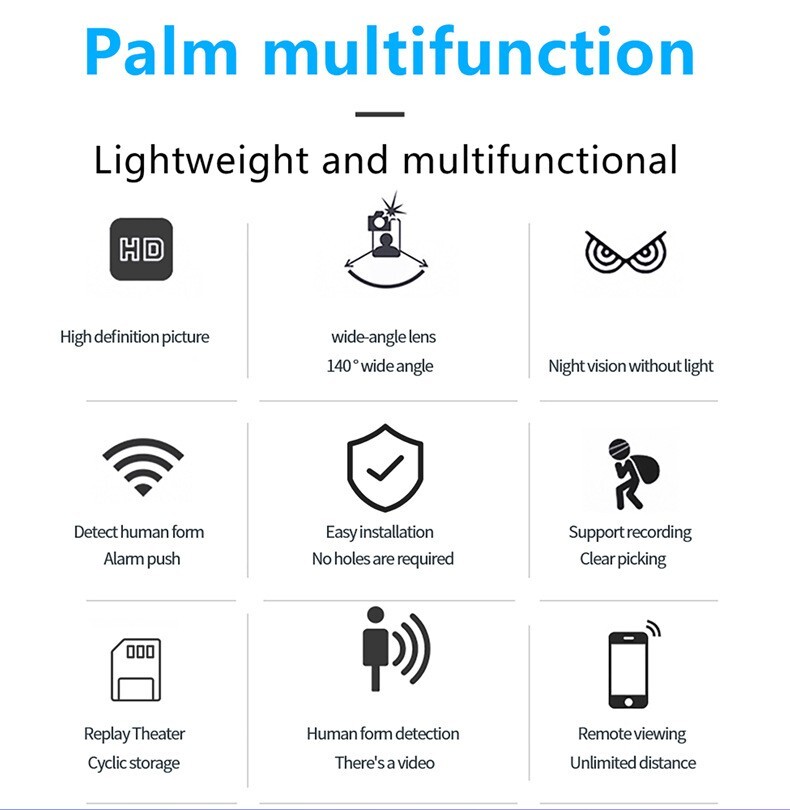 CCTV WiFi Wireless 4K Mini Camera DIY HD IP DVR Nanny 1080P Cam Reorder ✅【1080P Mini Camera】: WIFI camera works with 1080P MP4 video recording at 30fps. With 160° lens, this camera captures top quality images in wide angle. Meanwhile, this mini WIFI camera an be used with 2.4GHz WIFI, which lets you use it in wireless. ✅【Motion Detection】: With 2 pcs 940nm Invisible infrared LEDs, camera supports night vision with the distance up to 6 feet even at nighttime. Advanced CMOS sensor in this camera can record motions 6 feet away, you’ll set sensor sensitivity manually. Sign in the APP, as a way to notice you if it detects any motions, and automatically starts recording. ✅【Real-Time Monitoring】: streaming videos can be viewed on your phone after setting WiFi for the camera(only works with 2.4GHz), which makes it convenient so that you can know what happens remotely. Download the App on your phone and connect it with router Wi-Fi. Then view video on the App remotely from anywhere on the earth. ✅【Loop Recording】: This wireless camera supports 24/7 loop recording always, usb cable connect to power. If TF card in this camera is full, this cam starts overwrite the oldest files. ✅【Best Customer Service】: If there is any problem, please feel free to contact us, we will be able to solve the problem for you immediately. Specifications: Color:Black Material: ABSUSB Interface: Micro USBPower Type: Play & PlugTF Card Storage: 8-128G (maximum give a boost to 128G, storage for about 15 days)Lens: Wide-angle 160 DegreesPower Supply: Power bank power supply, household voltage power supply (plug-in use)Recording Video Format: AVIResolution: 1920 x 1080PPlay Software: System Auto PlayerComputer Operating System: WindowsMobile Phone Operating System: Android/IOSDimensions: 6cm x 2cm Features Motion detection, background alarm, network disconnection recording.Multi-user multi-platform viewing, loop recording, video playback, timing recording, alarm recordingRemote viewing via WiFi link (with WiFi antenna), with AP hotspot, you’ll watch even when the network is disconnected Many FeaturesWith 2 pcs 940nm Invisible infrared LEDs, camera supports night vision with the distance up to 6 feet even at nighttime. Advanced CMOS sensor in this camera can record motions 6 feet away, you’ll set sensor sensitivity manually. Sign in the APP, as a way to notice you if it detects any motions, and automatically starts recording. Real Time Monitoringstreaming videos can be viewed on your phone after setting WiFi for the camera(only works with 2.4GHz), which makes it convenient so that you can know what happens remotely. Download the App on your phone and connect it with router Wi-Fi. Then view video on the App remotely from anywhere on the earth. Mini Camera WIFI camera works with 1080P MP4 video recording at 30fps.With 160° lens, this camera captures top quality images in wide angle. Meanwhile, this mini WIFI camera an be used with 2.4GHz WIFI, which lets you use it in wireless. Loop RecordingThis wireless camera supports 24/7 loop recording always, usb cable connect to power. If TF card in this camera is full, this cam starts overwrite the oldest files. Package includes: 1 x CCTV WiFi Wireless 4K Mini Camera DIY HD IP DVR Nanny 1080P Cam ReorderShipping Information: Your item Ships Same Day to 1 Business Day from our California Location.