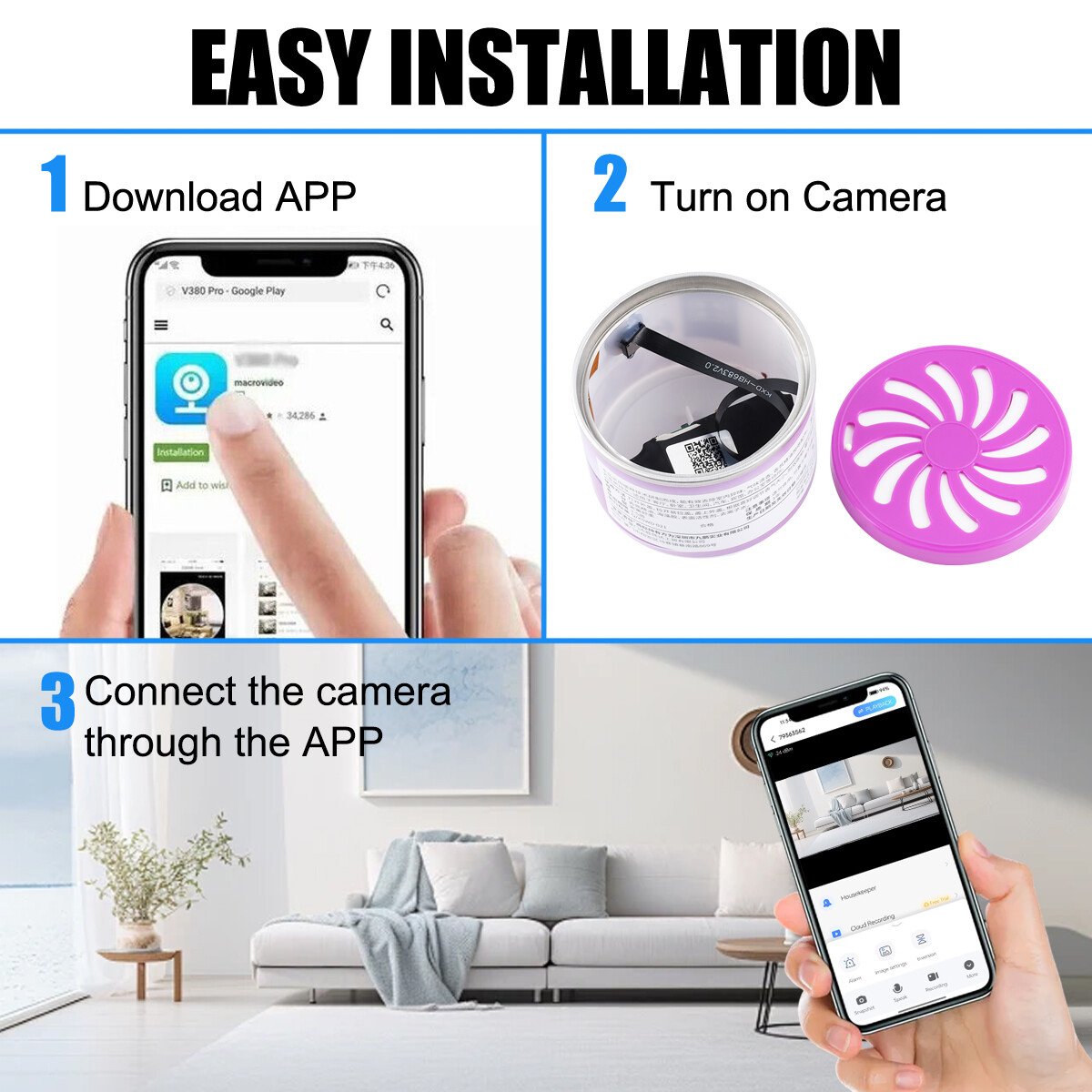Product Description Connected to the Internet use steps:Mobile phone to download APP V380 Pro and register – the camera into the memory card and boot (need to charge before the first use), the first use of the device to reset – reset is complete, keep the device powered on, open the mobile phone settings, in the WiFi list to find the products WiFi hotspot, the name of the ‘MV ——’, connect – connect successfully to enter the APP, scroll down and refresh to add devices–Enter settings–Network mode settings–Select router mode–Connect to your home router 2.4G WiFi according to the prompts–Enter camera settings and set options according to your needs. Product Indicator Lights:Power on: the red and blue lights are on at the same time, and stay on for tens of seconds Wait patiently for the device to enter standby mode, do not operate at this timeStandby: the blue light is off, the red light is all the time on, this time you’ll be able to connect the device WiFi hotspot Hotspot connection: the red indicator light is also on.Router connection: red indicator light is flashing, after successful connection, red indicator light is off, blue indicator light is all the time on.Reset device: Long press the reset button for 5 seconds, the red indicator light is on and flashing, the blue indicator light is off, and then the red indicator light is all the time on to return to standby mode.Charging: no indicator light Product Parameters:Material: ABSMain body size: Diameter 69 * Height 51 MM Product features: WiFi remote monitoring, motion detection alarm, card recording video, APP remote viewLens pixel: 200WVideo resolution: 1080P, 720P optional (choose HD, PD on APP)Video frame rate: 25-30FPSLens Viewing Angle: 90°Networking: 2.4G WiFi (5G WiFi not supported)Networking distance: 20 metres from the router (as close as conceivable to the router)App: V380 ProPower supply: Battery; can also be connected to a USB power supplyBattery capacity: 700mAhBattery life: about 3 hours Charging head: 5V 1A/2AMotion detection: Yes Night vision: No Voice Intercom: No (without speaker)Microphone: Yes (video tape recording)Memory card expansion: Maximum fortify for 128G memory card (not included, use C10 or above memory card)Video mode: All-day video, Event video List:1× WIFI camera1× USB charging cable1× user manual TermsShippingReturnsChontact USFeebbackFor any issues with Defects, Return, Item Exchange request, please contact us first and send us a message first before opening any type of case or request. We devote ourselves making EVERY CUSTOMER in 100% Satisfactory and unravel any problem. We highly value and appreciate your business. Thank you.No returns will be accepted without an RMA number. Please contact us for the RMA number.Return is acceptable within 30 days of delivery.Return for replacement or money back is optional.Returned items must be in the brand new, unaltered and resalable condition.Seller is not responsible for any labor cost, expense in a dealer store, or damage because of improper installation.Handling time: 1 business day (Orders aren’t processed on weekends & holidays)Tracking information will be sent once item is shipped.Local pick-up is unavailable these days.For international shipping and shipping to Guam, Hawaii and Alaska, Please contact us before placing the order.Item is shipped to ebay address. Leaving correct address can minimize delay.Return is accepted within 14 days after the buyers receiving the item. (Excluding contrived damagement or misusage).100% money-back Guaranteed!All product will be tested in 100% before delivery.If the item is defected by the processing of postage,Buyer has up to 14 days from date of receipt forexchange of a new one.All shipping charges for returned products are to be paid by the buyer,Please contact us for the return addressAll messages will be answered within 24 office hours.Please contact us either by clicking “contact seller” in the “purchase history” section or simply click “ask a question” at the bottom of this page.If you are unsatisfied with our item or service, please contact us before leaving any feedback. We are committed to unravel all issues in a friendly and satisfactory manner. We all the time reply to messages within 2 business days (off-duty at weekend). If you do not get a response from us, then please check your junk or spam mailbox.If you are satisfied with the purchase and our total service, your comment is very important in our business success. Please take a minute to leave us a positive feedback with an overall Detailed Selling Rating (DSR) of 5.Our eBay account setup auto feedback, so eBay system gives you automatically Positive feedback back after your positive feedback left.If you plan to give us a neutral/negative feedback Or open ebay/paypal case, please write to us immediately so that we will do our best to unravel your problem.TermsFor any issues with Defects, Return, Item Exchange request, please contact us first and send us a message first before opening any type of case or request. We devote ourselves making EVERY CUSTOMER in 100% Satisfactory and unravel any problem. We highly value and appreciate your business. Thank you.No returns will be accepted without an RMA number. Please contact us for the RMA number.Return is acceptable within 30 days of delivery.Return for replacement or money back is optional.Returned items must be in the brand new, unaltered and resalable condition.Seller is not responsible for any labor cost, expense in a dealer store, or damage because of improper installation.ShippingHandling time: 1 business day (Orders aren’t processed on weekends & holidays)Tracking information will be sent once item is shipped.Local pick-up is unavailable these days.For international shipping and shipping to Guam, Hawaii and Alaska, Please contact us before placing the order.Item is shipped to ebay address. Leaving correct address can minimize delay.ReturnsReturn is accepted wi