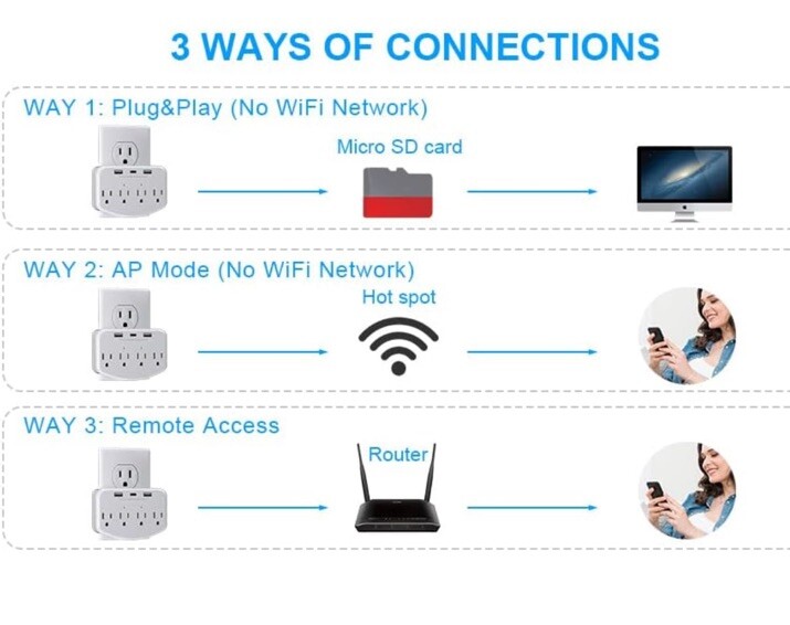 1080P HD WIFI IP Camera Wall USB Outlets Power Socket Hidden Cam Network DVR