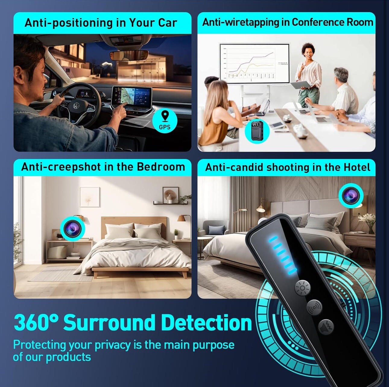 Hidden Camera Bug Detector Spy Camera Finder GPS Tracker Device for Hotels Home