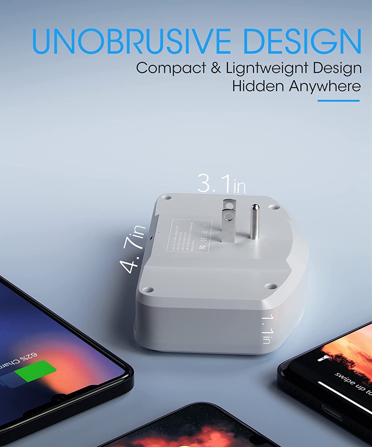 Store New Arrivals Add to Favorite View Feedback Contact Hidden Camera Wall Charger with Wifi Spy Camera Hidden Cameras Outlet HD 1080 Description Connectivity Protocol Wi-Fi Product Dimensions 4.7 x 3.1 x 1.1 inches Item Weight 8.4 ounces Connectivity Technology Wireless, Wired Recommended Uses For Product Spying Special Feature Portable, HD Resolution, Home Security, Motion Sensor ✔️【4 IN 1 Function Hidden Camera】 Fit duplex outlet perfectly, just plug in to use. 3 AC outlet expander (120V, 15A, 1800W ) with 3 USB PD fast charging ports(3.4A, 20W ), 1700 joules surge protector and a hidden camera. Can be used as a outlet for daily use. ✔️【Online & Local Access】This wireless hidden camera fortify iOS and Android. Connect it to the network (2.4 GHz WiFi), and you’ll watch anywhere. If no network, insert a card (128GB max), you’ll connect to the camera with APP to access the camera and view the storage recording content. ✔️【Full HD Hidden Camera 】Super low light, 150° wide angle, 1.3 MP, 1080P, 1/2.8″ sensor, fast wireless-N speed WiFi connection. True P2P automatic set-up technology, anyone can set-up in minutes! Camera indicator is on by default, can be turned off in the APP settings. ✔️【24/7 Loop recording】 This outlet extender with spy camera features hotspots so it can record without WiFi too. This security camera can write down 24/7. The hidden camera charger will auto write down HD screen files to sd card and overwrite the oldest SD card file so that it can continue to work after it is full. ✔️【100% Satisfaction Guarantee】Dear customers, if you want any issues before or after the purchase, please feel free to contact us. One year of free replacement if unit malfunction. Product Description 20W PD Fast Charging 3 AC outlet expander (120V, 15A, 1800W ) with 3 USB PD fast charging ports(3.4A, 20W ) Max 128G Storage Compatible with 128G TF card. When the memory space is full, the newest file will overwrite a prior file. Fisheye Wide Angle Lens Designed with a fisheye lens, it has a 150° wide angle to view the whole house. Brand Buedarate Power Supply Socket Power Pixel 1080P Max Capacity of SD Card 128GB Feature Security/ Fast Charge Plug Portable/ DIY ABOUT US We offer the best prices around on top quality products. Our E-store includes media such as books, movies, music and games whilst offering electronics, toys, sporting apparel, clothing, tools, general home, garden items and more. SHIPPING We are all the time working hard to ensure your package arrives as soon as conceivable. Please take into account that some factors like weather, high postal traffic, and the performance of shipping companies are outside of our control. We offer free shipping to the lower 48 states and ship within 3 business days of payment, usually sooner. We do not accept P.O. Boxes. Please provide a physical address. For shipping outside of the continental USA, we only use eBays Global Shipping Program.The item is shipped to KY and then sent to the rest of the world. International customers are responsible for all duties and taxes. Continue to try in order to calculate costs for shipping the item to your country. Messages regarding eBays Global Shipping Program MUST be directed at eBay EXCLUSIVELY. RETURNS We offer a 30-Day Return Policy on items which you aren’t completely satisfied with. You have the option for a full-refund or an exchange of the item. No returns are available on items shipped outside of the USA. PAYMENT We accept PayPal. CONTACT US This page content is yet to come Please ad us to your favorite seller and visit again later Thank You CUSTOMER SATISFACTION We try our very best to make sure every customer is completely satisfied. If theres a problem, message us! Were happy to help. WE ACCEPT Copyright © 2021 AutoDS. | All Rights Reserved