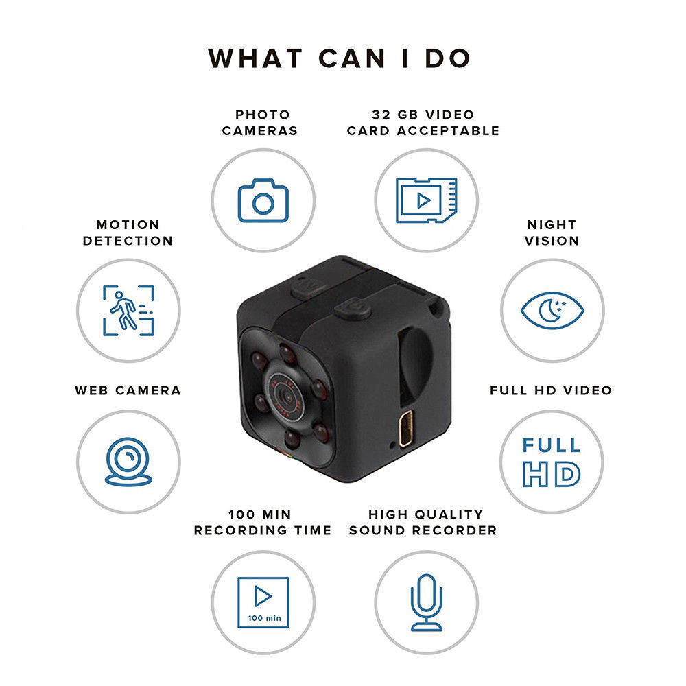 Hidden Mini Spy Camera, Full HD 1080P Wireless Hidden Cam, with Night Vision and Motion Detection, Security Camera for Home Hotel Feature: High definition full HD1080P Give a boost to 32GB TF card max (Memory card not included) Image proportion: 4 : 3 Give a boost to system: Windows ME / 2000 / XP / 2003 / Vista, Mac OS, Linux Battery capacity: 200mAh Working time: About 100 minutes at 1080P 30fps Charging time: About 2-3 hours Charging voltage: DC 5V Interface type: Mini 8 pin USB Cable length: 80 cm/31.5 inch Built-in lithium battery sustainable camera as much as 100 minutes Friendly Tips: 1.Please kindly allow 2-3% difference in step with manual measurement. 2.Please check the measurement chart before you purchase the item. (1inch=2.54cm) 3.Please note that slight difference must be acceptable because of the light and screen.Thanks. Specification: Type: Full HD Dashcam System requirements: Mac OS x 10.3.6 above,Win 7,Windows 2000 / XP / Vista Max external card supported: TF 32G (not included) Class rating requirements: Class 10 or Above Battery type: Built-in Charge way: USB charge by PC Working time: About 100 minutes at 1080P 30fps Camera pixel: 12MP Decode format: MJPG Video format: AVI Video resolution: 1080P (1920 x 1080),720P (1280 x 720) Video frame Rate : 30fps Image format: JPG Image resolution: 12M (4032 x 3024) Audio system: Built-in microphone/speacker Package Contents: 1 X Mini Camera Promise: If the product has any quality problems, please feel free to contact us, we can can help you solve the issue as quickly as conceivable.
