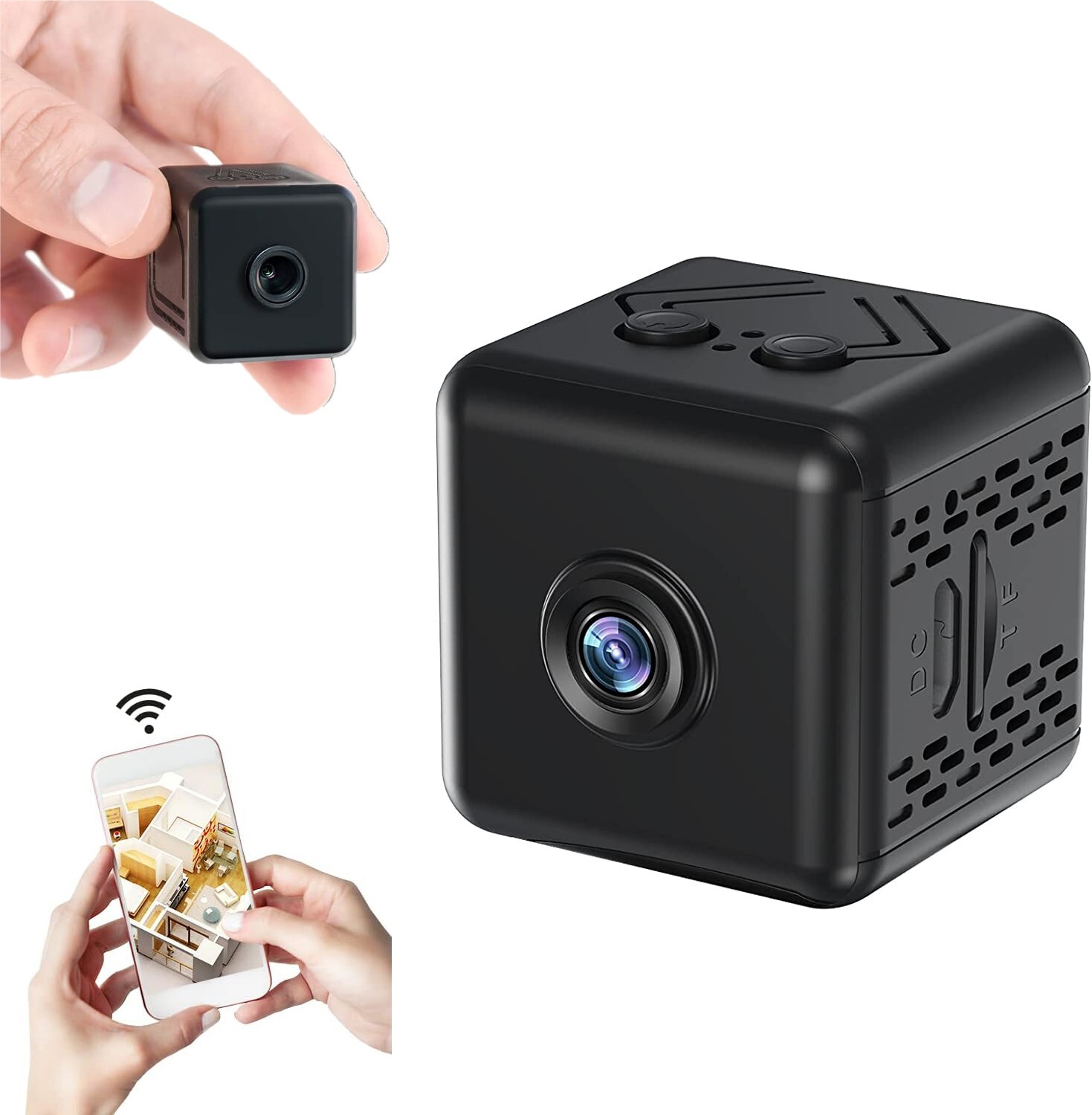 Mini S p y Camera – WiFi Hidden Camera for Home Security 1080P HD – Cam for Baby and Pet Monitoring – Live Video Recorder with Night Vision and Motion Detection – Phone App, Black About this item: ?【Excellent Performance Mini Camera】—①5 hours of built-in battery life, longer working time than other cameras ②Real HD 1080P ③Support up to 128GB SD card (not included) ④150° wide angle ⑤Automatic night vision: 6 infrared IR lights (non-luminance) ⑥Motion Activated Alarm ⑦Wifi live stream from anywhere ⑧ Complete free APP for Android /iOS. ?【Lightweight & Compact S p y Camera】—Mini cube side length,1.5‘’, only 0.66 ounces, currently, the smallest volume in the marketplace by 2023. ?【Three ways of use Hidden Camera】—①SD card loop recording (WiFi is not needed,BUT SD card should be above class 10!!!) ②Live stream by APP ( WiFi/SD card is not required, please note that the phone and camera cannot exceed 5M ) ③Live remote view(Need WIFI,Only 2.4GHz):Connect the small camera to your home network via APP, as a way to watch and record real- time surveillance video despite the fact that you are traveling. ?【Night Vision Mini Camera 】This night Security Camera Indoor provides you with unbelievable night experience even at nighttime, provides a full protection to your home, and lets you see the whole room at night – instead of just a limited spotlight view of day or night. ?【Protect Your Home and Personal Property】Stay a step ahead of any dangers in your life with our portable wireless mini camera for indoor/outdoor security, this mini camera easily monitors your home, hotel, office, anywhere else you want protection. Use it as a baby, pets, nannies, housekeepers, caregivers, professional surveillance, and so on.
