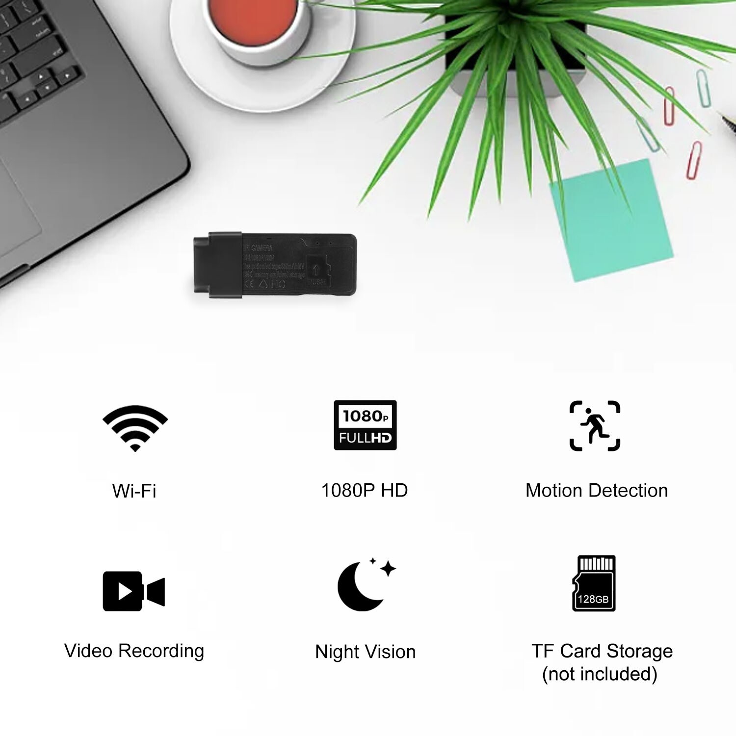 features | 1080 HD, App Control, Digital, Flashing LED, Instant Alert, LED Indication, Live Viewing, Mini Surveillance Camera, Motion Detection, Motion-PIR Activated, Multi-User Sharing, Multiple Language Support, Night Vision, Plug in, Push Alerts, Remote Access, Support 128GB TF Card Storage, USB drive-sized, Wi-Fi |