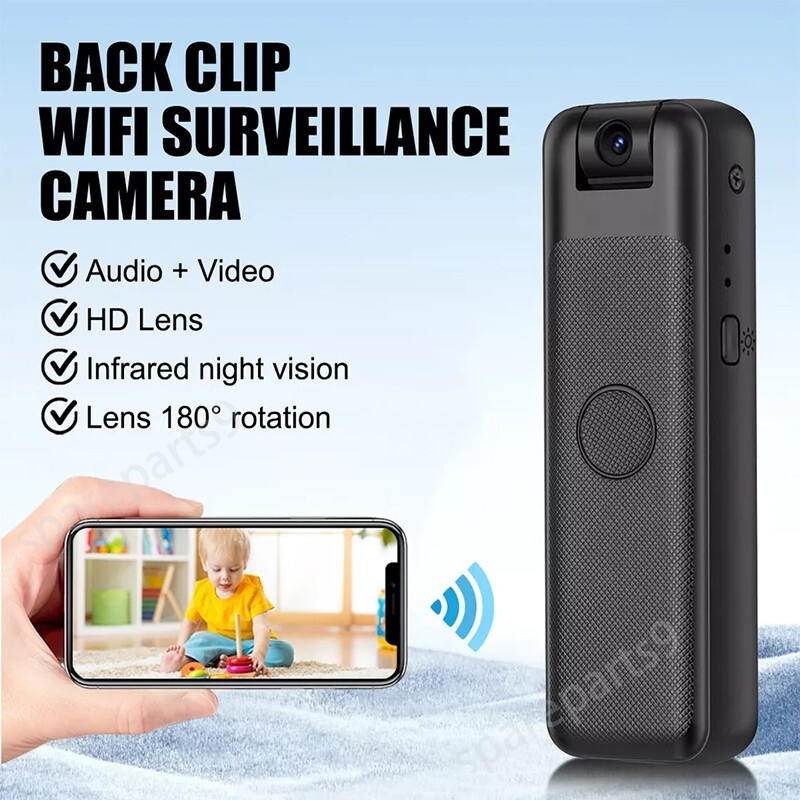 features | 130° Wide Angle, 180° Ratatable Lens, Built In 3 Infrared Lights, Easy To Use, Loop Recording, Night Vision, One Click Recording, Portable, Rechargeable, Strong Magnetic Adsorption, Wi-Fi |