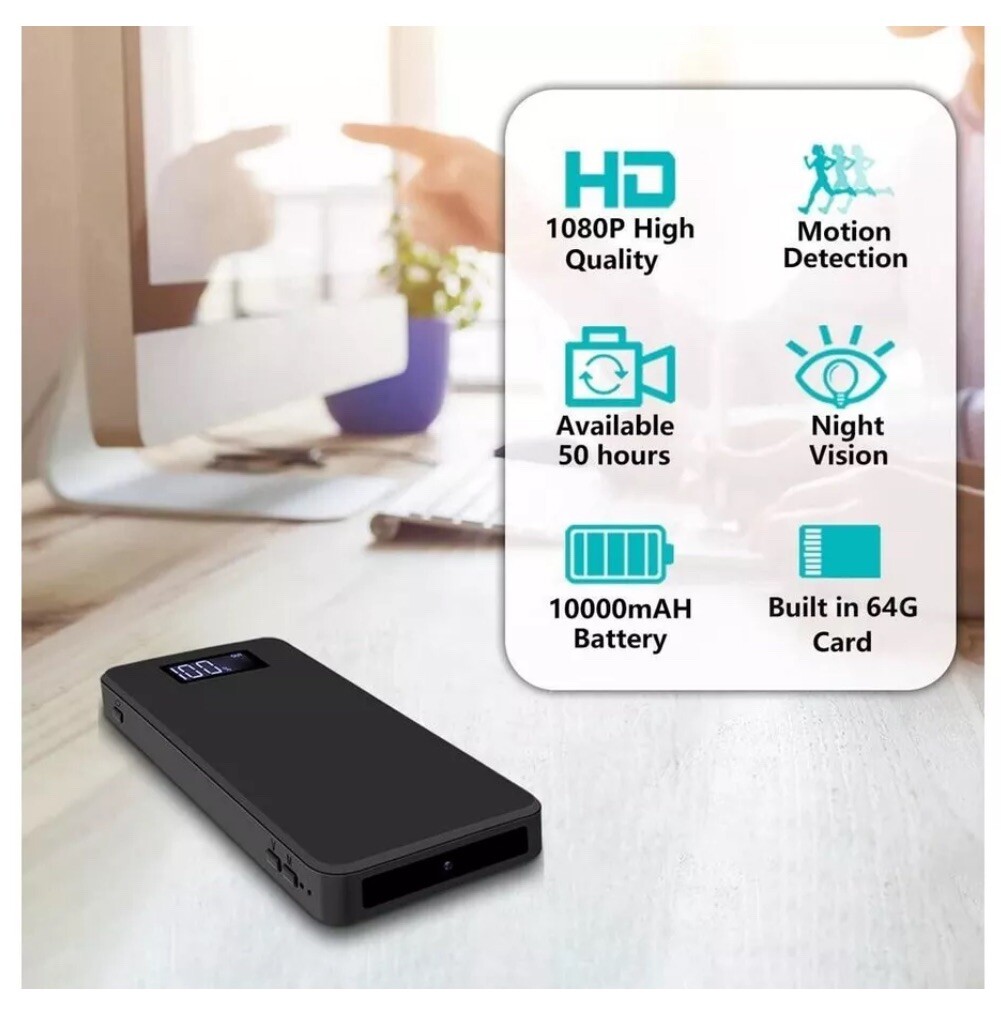 Spy Power Bank Hidden Security Nanny Camera 64GB 10000Mah HD 1080P Portable